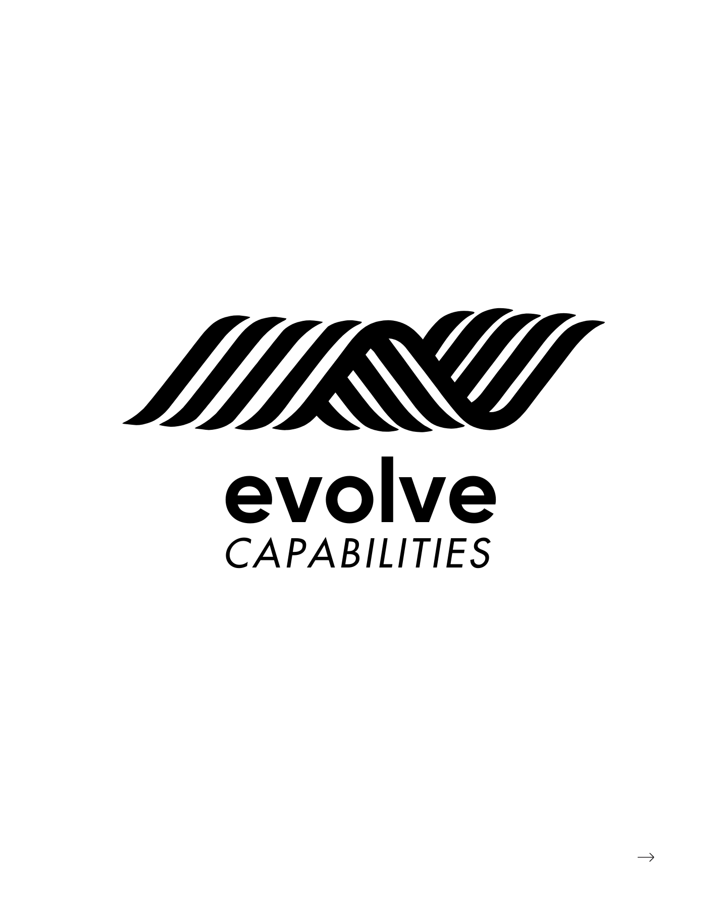 Concept One: The 5 lines represent the 5 core pillars and signifies motion, progression, and transformation. The lines represent an active and dynamic brand, conveying excitement, continuous progress, adaptability, and a drive to push boundaries. A lowercase wordmark feels modern, friendly, and humble—simple yet confident. “Capabilities” beneath the evolve symbol reflects growth, learning, and ongoing progress.